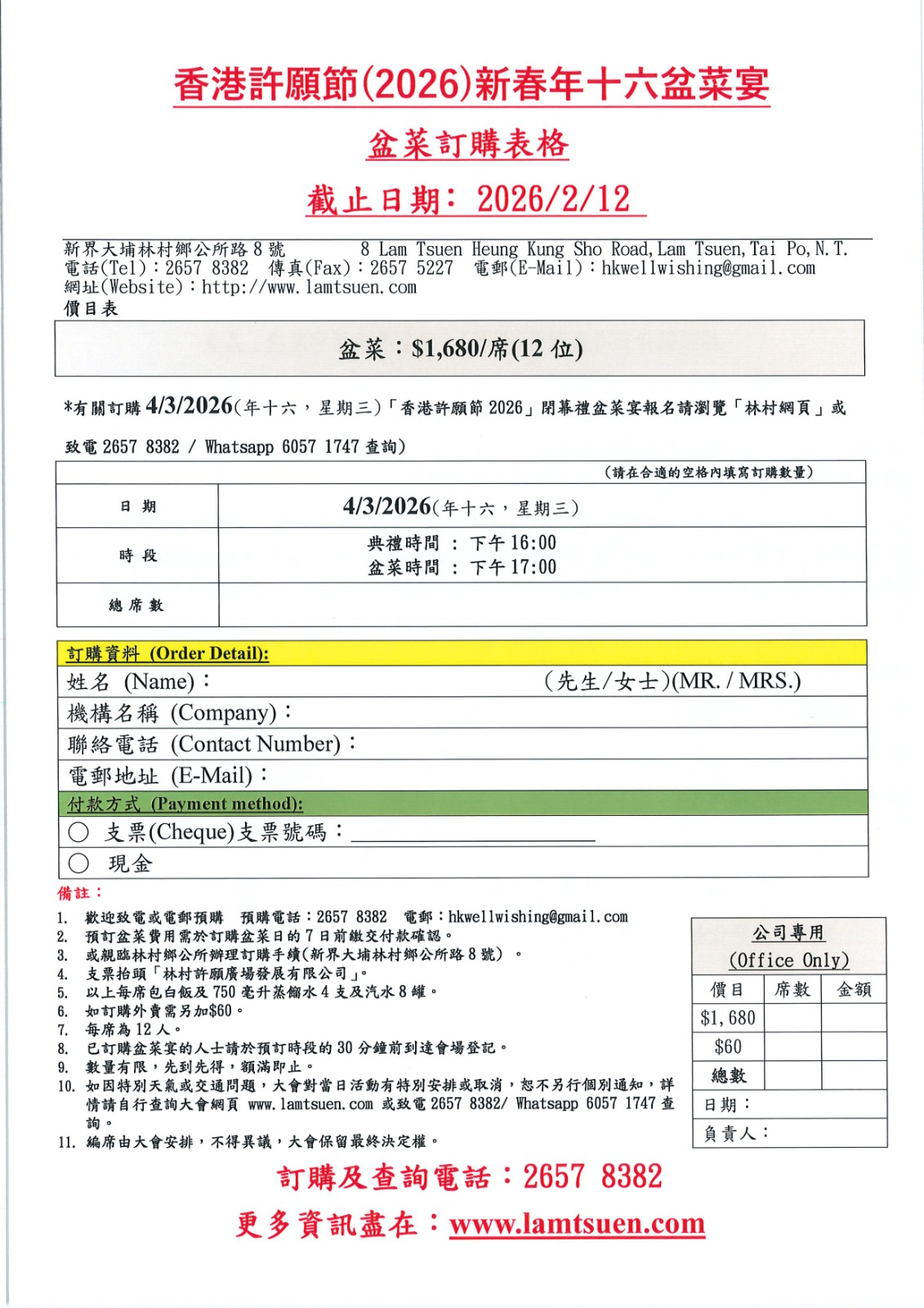 訂購表格